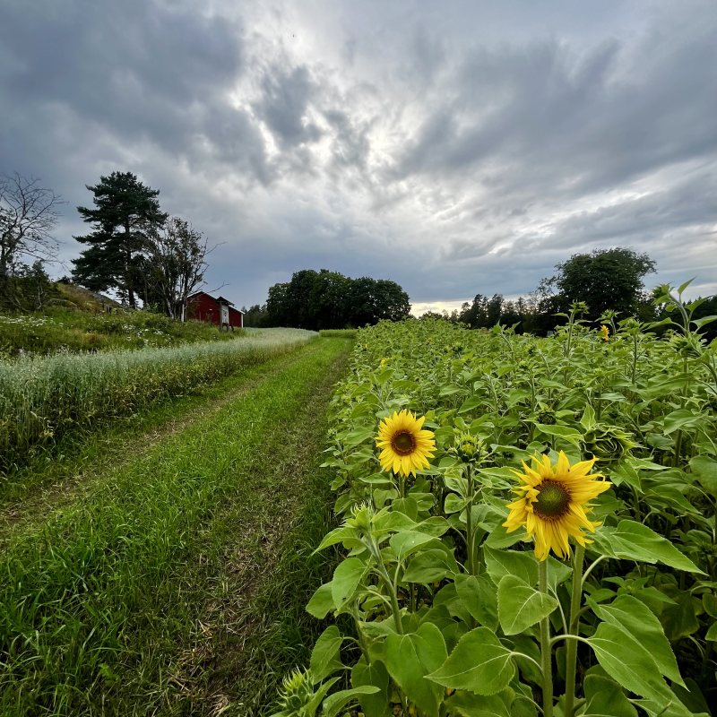 I våras sådde vi solrosor på prov, det gick mycket bättre och ble v fler än vad vi hade kunnat ana. Nu har det börjat blomma och de