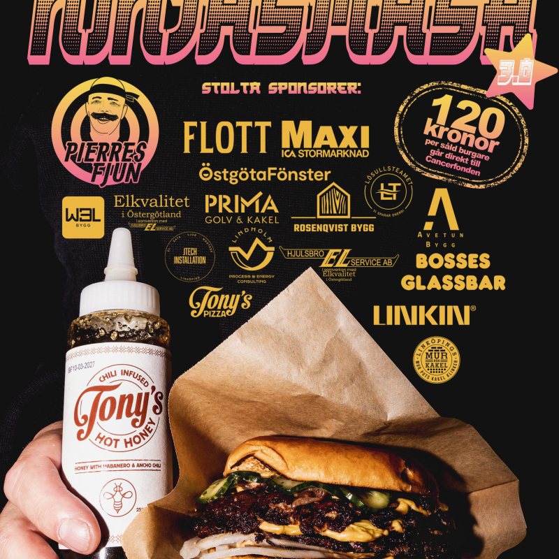 Tredje året i rad där flera sponsorer skänker pengar baserat på a ntalet hamburgare jag säljer på Flotts restauranger i Linköping u