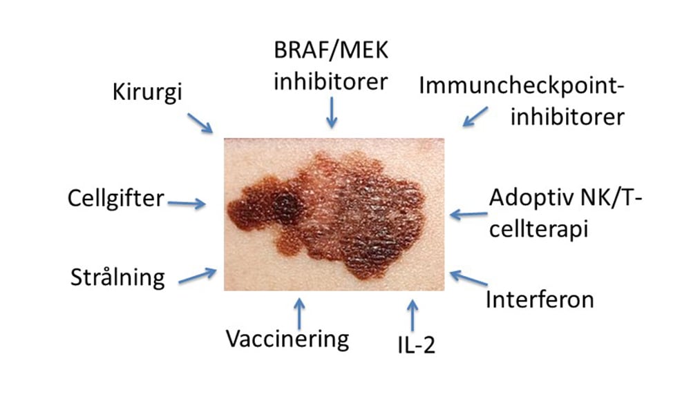 Ungefär 4 000 personer får varje år diagnosen malignt melanom. Dessa uppstår oftast i huden, vilket gör att de kan opereras bort och mellan 80 och 85 procent av de som får diagnosen botas. Men cancern kan även uppstå i slemhinnor och ögon. Och om ett malignt melanom sprider sig är prognosen dålig.